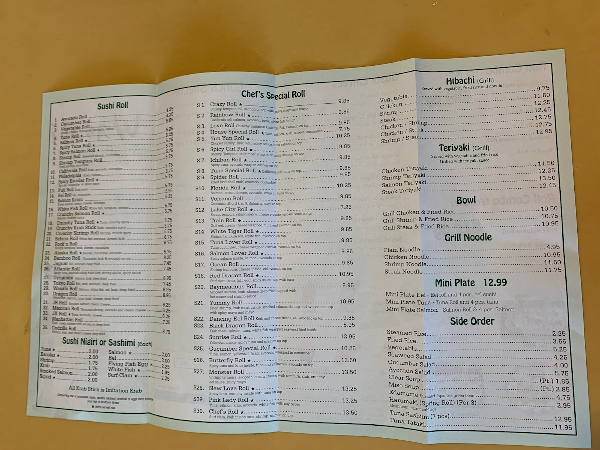 The menu boasts a diverse range of sushi, including the must-try Salmon Katsu Roll and the vibrant Dragon Roll, each dish crafted with fresh ingredients and precision. If you're in the mood for something hearty, the hibachi grill options are simply irresistible, featuring tender cuts of shrimp, steak, and chicken cooked to perfection.